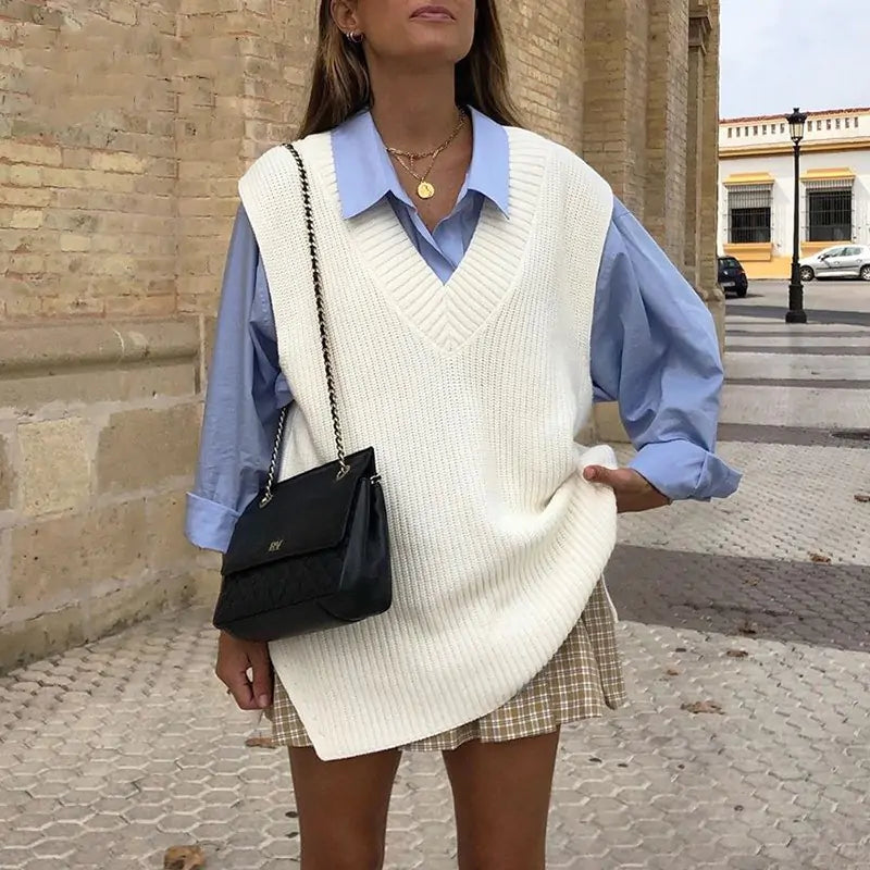 Looking for a stylish and unique vest that will keep you warm this winter? Look no further than our V-neck Knitted Sleeveless Vest! Made from a soft and cozy knit fabric, this vest is perfect for layering over your favorite tops and dresses. The V-neck style adds a touch of elegance, while the split hem provides a relaxed and comfortable fit. Whether you're headed to the office or out for a night on the town, this vest is sure to keep you looking and feeling your best. So don't wait any longer, order your V-neck Knitted Sleeveless Vest today!